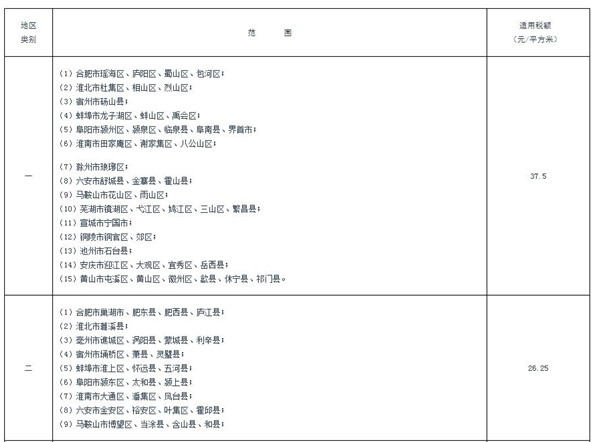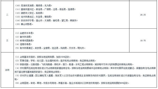 为了合理利用土地资源,加强土地管理,保护耕地,根据《中华人民共和国耕地占用税法》,结合我省经济社会发展和耕地保护现状,对本省耕地占用税适用税额作出如下决定:一、按照人均耕地面积将各县、不设区的市、市辖区划分为三类地区。其中,一类地区税额标准为37.5元/平方米,二类地区税额标准为26.25元/平方米,三类地区税额标准为18.75元/平方米。