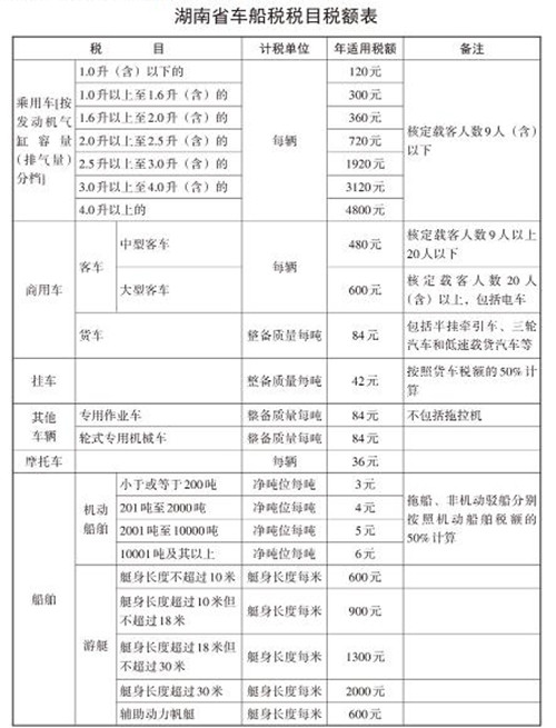 第三条 本办法第二条规定的车船的适用税额,依照《湖南省车船税税目税额表》执行。