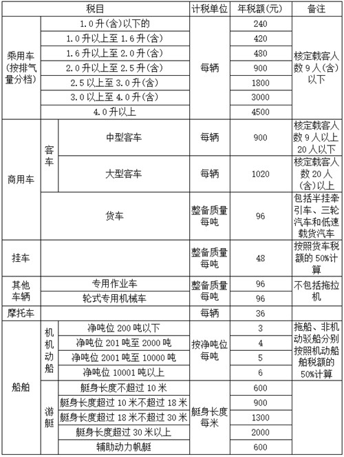 附件:吉林省车船税税目税额表