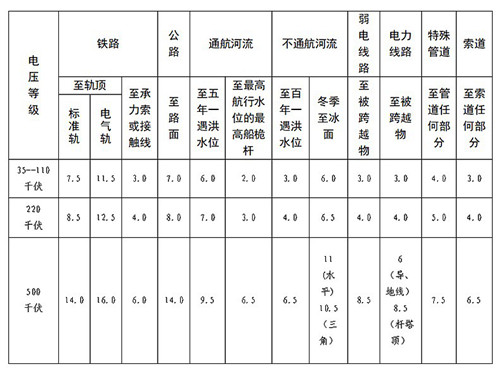 架空电力线路与铁路、公路、河流、弱电线路、索道及各种架空线路交叉或接近时,应符合以下最小垂直安全距离(米):