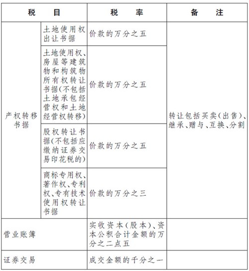 第二条 本法所称应税凭证,是指本法所附《印花税税目税率表》列明的合同、产权转移书据和营业账簿。